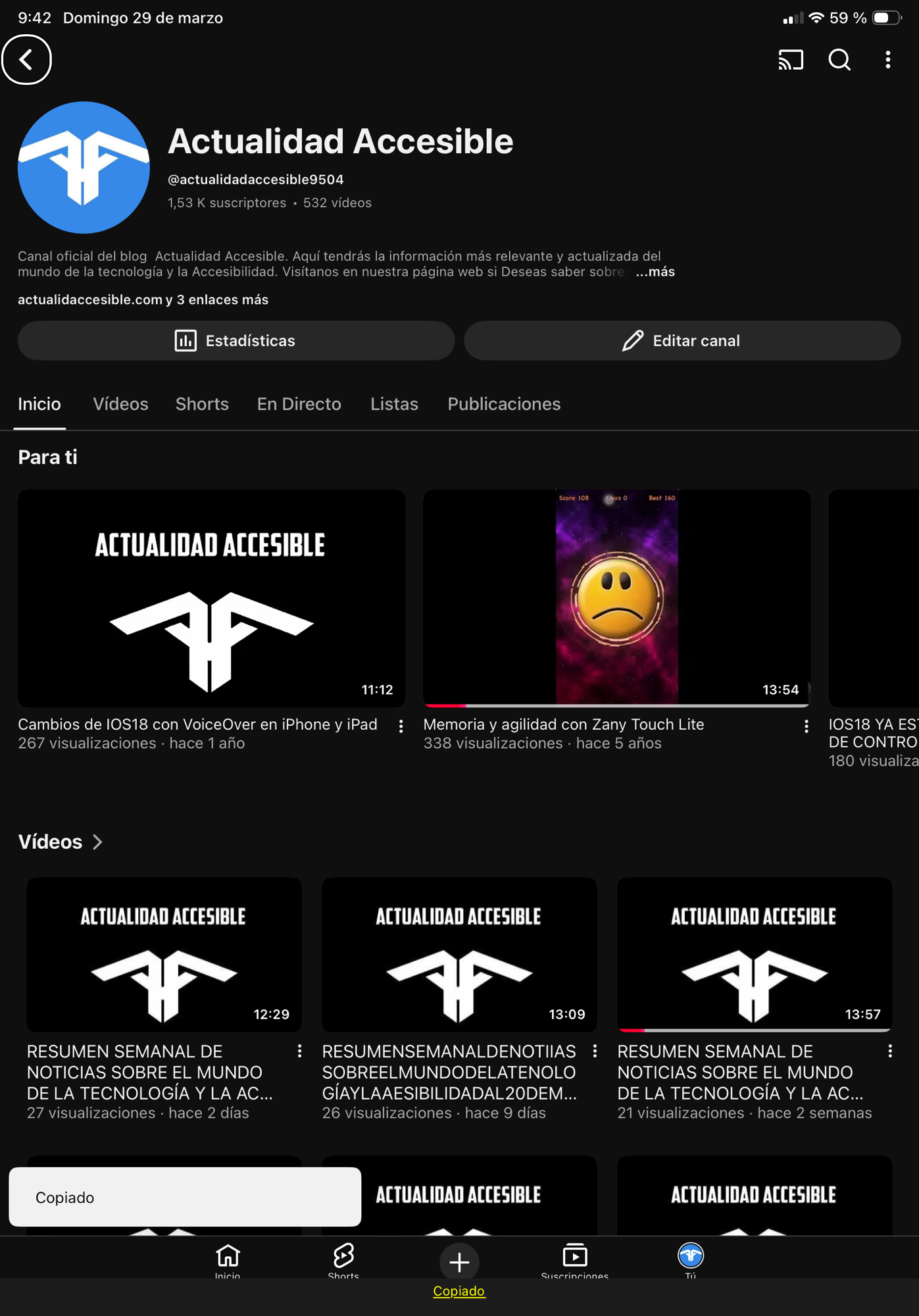 BUSCAMOS LOS MEJORES PODCASTS Y VIDEOS DE YOUTUBE SOBRE TECNOLOGÍA Y ACCESIBILIDAD PUBLICADOS DURANTE LA SEMANA,HASTA HOY DÍA 29 DE MARZO DE 2026